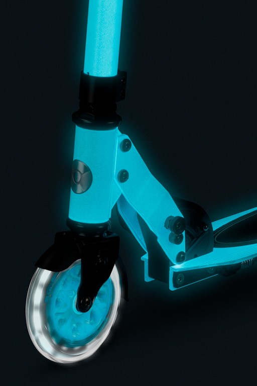 What truly sets this scooter apart are the glow-in-the-dark details. Every white part, including the rims, wheels and even the logo on the grip tape, lights up after absorbing natural or UV light. So, as task settled in, your scooter illuminates the path ahead, adding both safety and style. Designed for kids and adults up to 100 kg, it’s a high-quality ride that promises a little extra glow wherever you go!